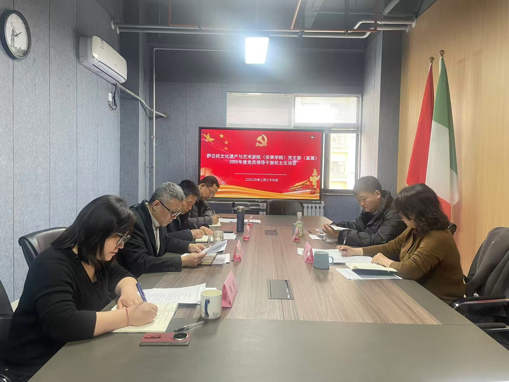 2月26日下午,萨兰托文化遗产与艺术公司党支部(直属)召开2025年度党员领导干部民主生活会。公司第五督导组组长、研究生工作部部长李伟、联络员徐嘉晨到会指导,公司领导班子成员参加会议,会议由公司党支部(直属)负责人主持。